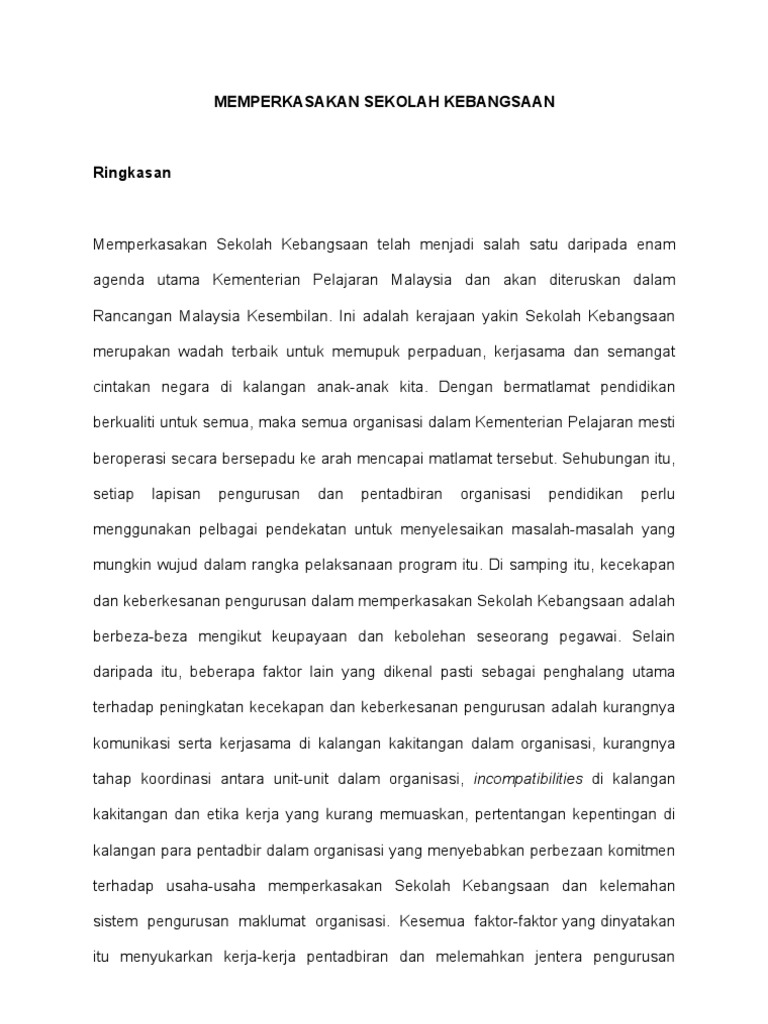 Contextual translation of memperkasakan sekolah kebangsaan into English. Di sekolah menengah kebangsaan dan guru khas untuk sekolah menengah jenis kebangsaan. Alhamdulillah Setinggi-tinggi kesyukuran dipanjatkan kehadrat Allah swt.